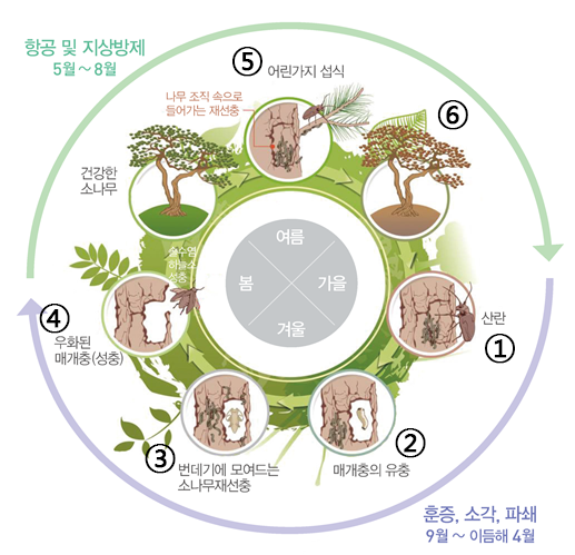 [그림1 : 매개충의 생활사에 따른 방제 시기- 산림청 제공]