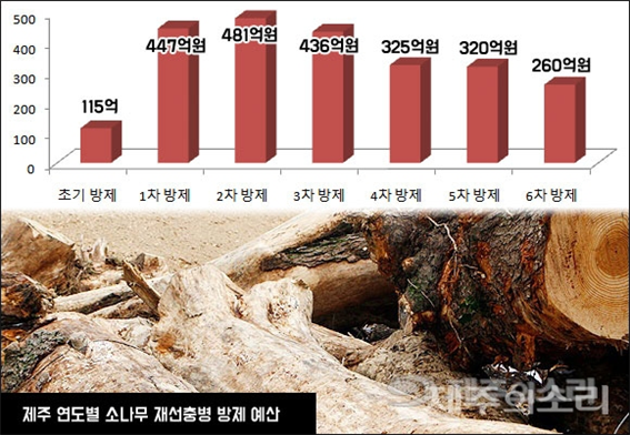 <그림2: 제주 연도별 소나무재선충 방제예산-제주의소리 제공>